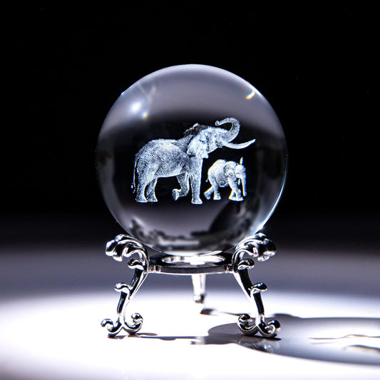 3D Laser Elephant Crystal Ball Paperweight Figurine | K9 Crystal Home Art Décor